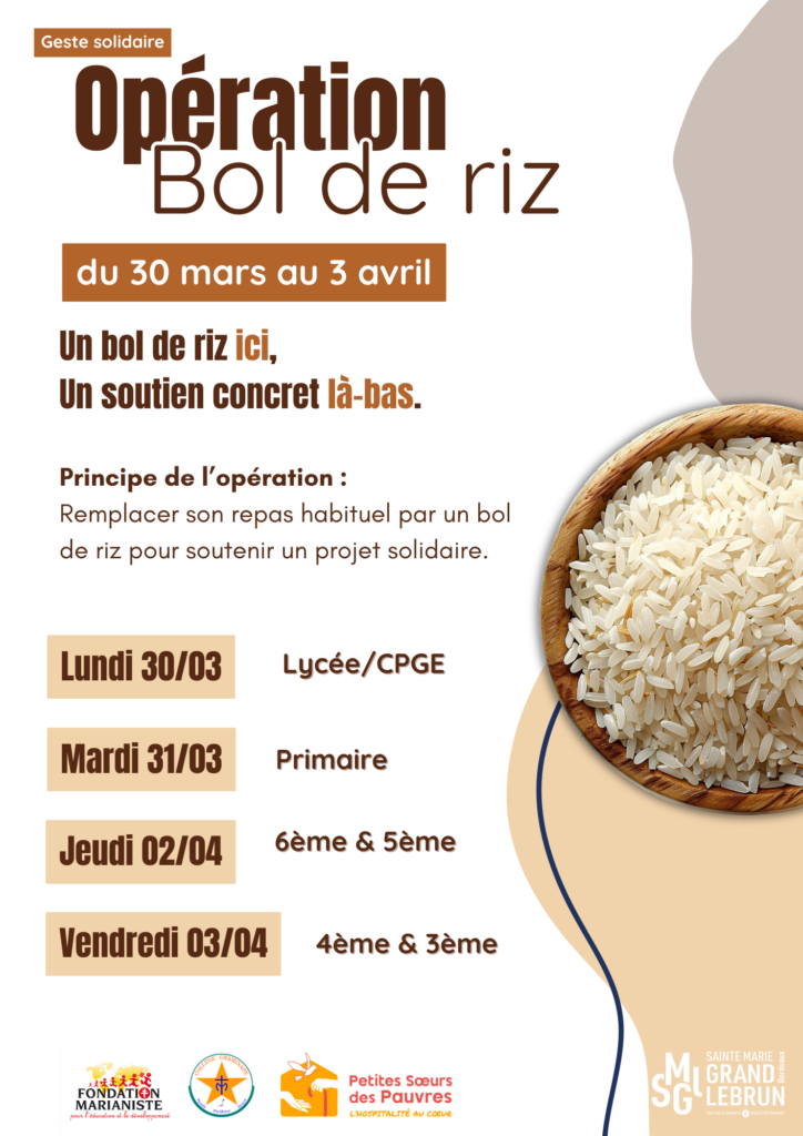 Dans le cadre du Carême, l’équipe pastorale a renouvelé l’opération « Bol de riz », un temps fort solidaire et porteur de sens, désormais bien ancré dans la vie de l’établissement.